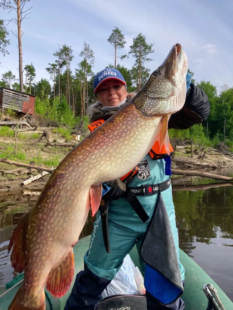 В ХМАО девушка, которая не боится медведей, поймала щуку с себя ростом. Фото