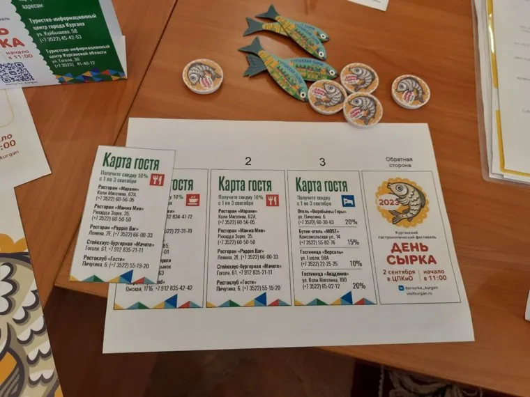 «С 24 августа в Кургане началась рыбная неделя. Гостям города сделают скидки по карте гостя в отелях, ресторанах и кафе. Скидка приличная, многие курганские предприниматели откликнулись на такое предложение, некоторые рестораторы готовы делать комплименты туристам», — рассказала директор библиотечной информационной системы Людмила Дорофеева. Скидки для туристов составят: на проживание в гостиницах — 10 — 20%, на меню в ресторанах — 10%.