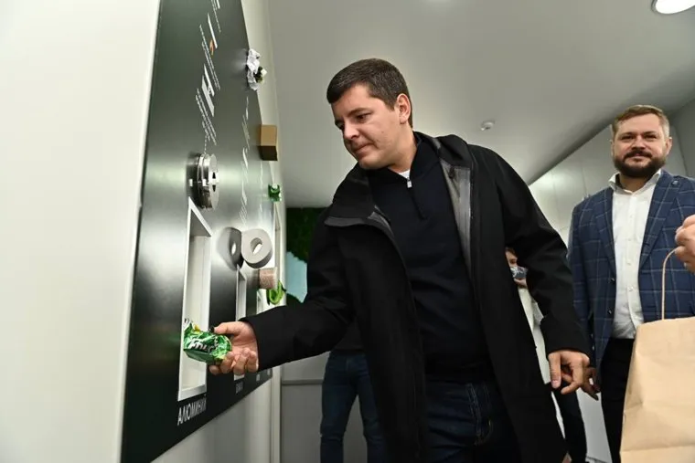Дмитрий Артюхов в новом экодоме отправил на утилизацию пластмассовые крышки. В церемонии открытия экодома также приняли участие мэр города Алексей Романов, региональный координатор экологического проекта «Будущее Арктики» Владимир Пушкарев и директор «Энерго-Газ-Ноябрьск» Валерий Ольхов.