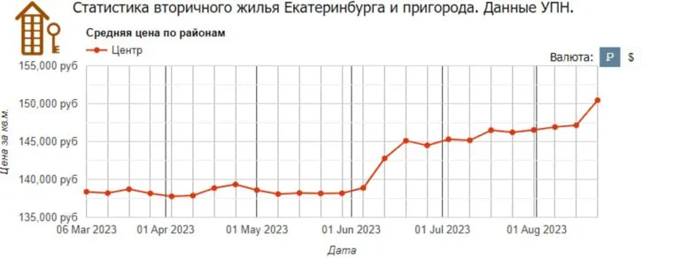 Средняя стоимость квадратного метра в квартирах вторичного рынка в центре Екатеринбурга достигла 150,4 тысяч рублей, что стало самым максимальным показателем за все время. Об этом корреспонденту URA.RU рассказал руководитель аналитического отдела «Уральской палаты недвижимости» (УПН) Михаил Хорьков.