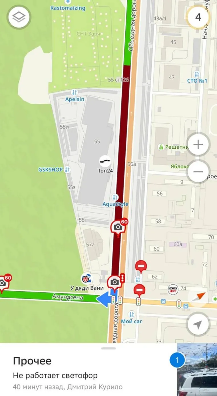 «На Амундсена-Объездной глухая пробка. Все из-за светофора, он сломался», — поделился собеседник агентства.