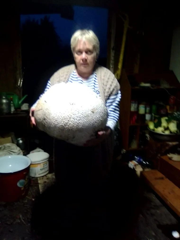 Женщина нашла гигантский гриб возле дома в поселке Травники