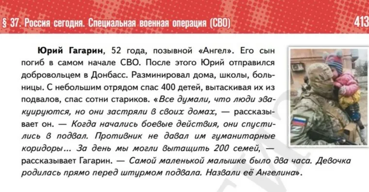 Заместитель командира полка «Апостол», челябинец Юрий «Ангел» Гагарин попал на страницы нового учебника по истории. Страницы учебника имеются в формате PDF в распоряжении URA.RU. По словам Ангела, он никогда не думал, что станет частью истории страны.