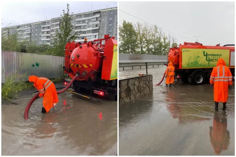 В Челябинске спецслужбы откачивают воду с дорог. Фото