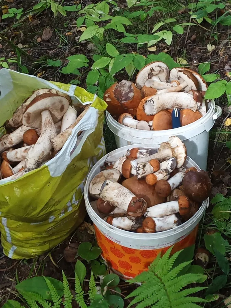 «Сегодня гуляли по окрестностям Гамово (Пермский район) и на нас „напали грибы“. Пришлось насобирать два пакета обабков и красноголовиков. Много переросших», — поделилась историей Яна Зернина. «За полтора часа прогулки собрали три ведра грибов», — подписал фотографию Серега Шалдин.