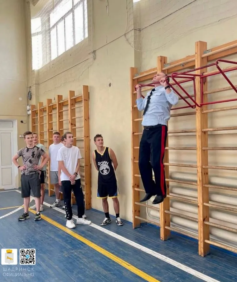 «Заглянув на урок физкультуры, главный полицейский региона [Дмитрий Свинов] на своем примере показал, что сотрудники ведомства должны быть в хорошей физической форме. Спортзал оказался готов и к занятиям будущих полицейских, и к подтягиваниям энергичного генерала. Финальной точкой экскурсии стало знакомство с профильным классом МВД», — говорится в telegram-канале мэрии Шадринска.
