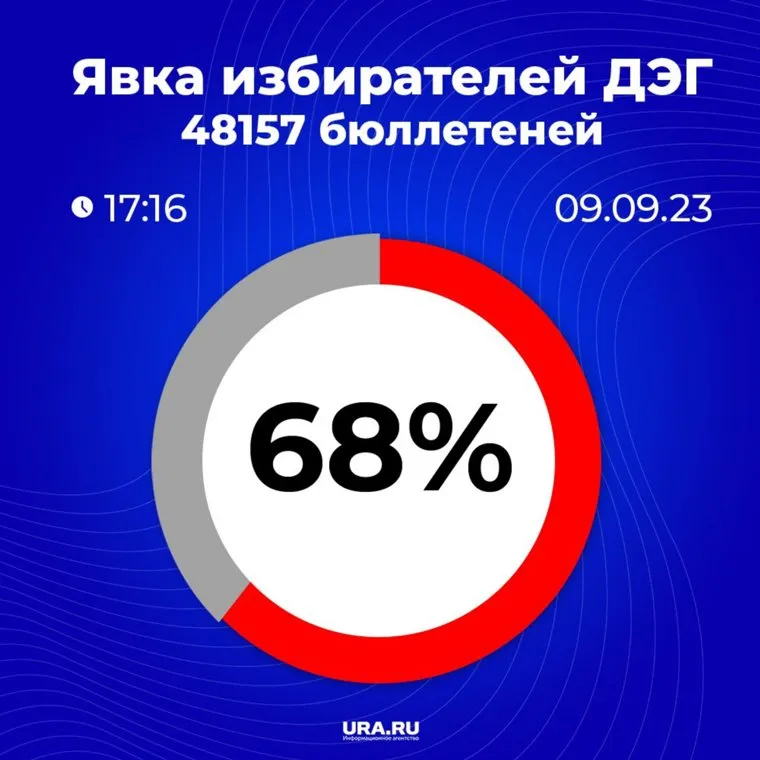 17:16 С помощью дистанционного электронного голосования (ДЭГ) проголосовало 68% избирателей. Это 48157 выданных бюллетеней от общего числа участников — 70958.
