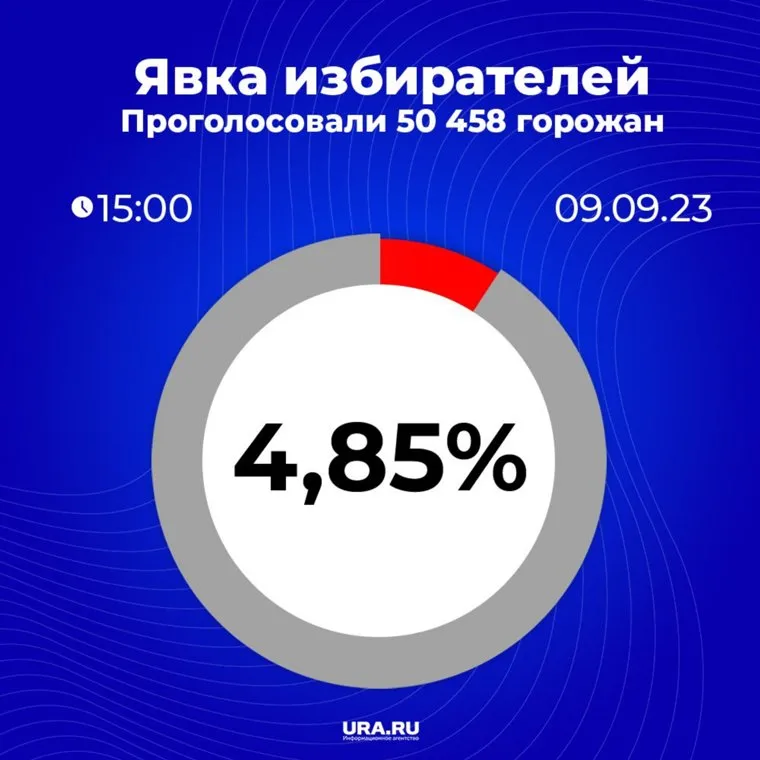 16:08 Результаты очной явки на выборы на Екатеринбурге. На 15:00 явка составила 4,85%. Проголосовали 50 458 горожан, сообщил Свердловский избирком.