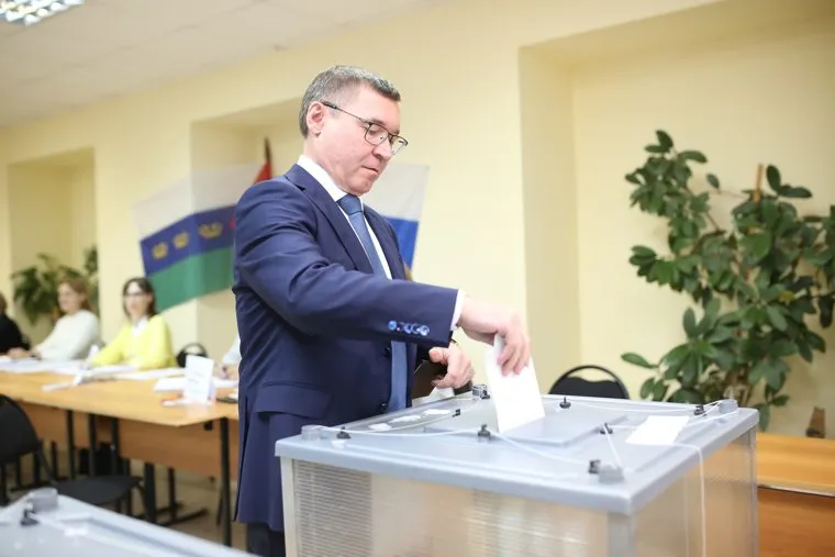10:17 Александр Моор проголосовал на своем избирательном участке. Он пожелал тюменцам уверенности в будущем.