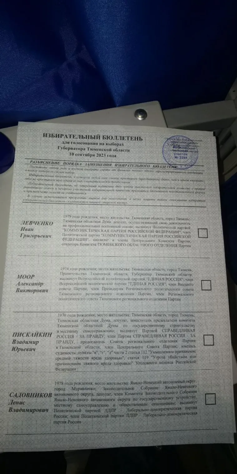 08:29 А так выглядит бюллетень для голосования за губернатора Тюменской области.