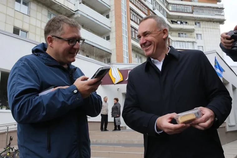 09:12 Корреспондент URA.RU сообщает, что глава администрации Тюмени Руслан Кухарук правильно ответил на вопрос первого этапа викторины «Zнай свой край!». Подарком для мэра стала пачка печенья.