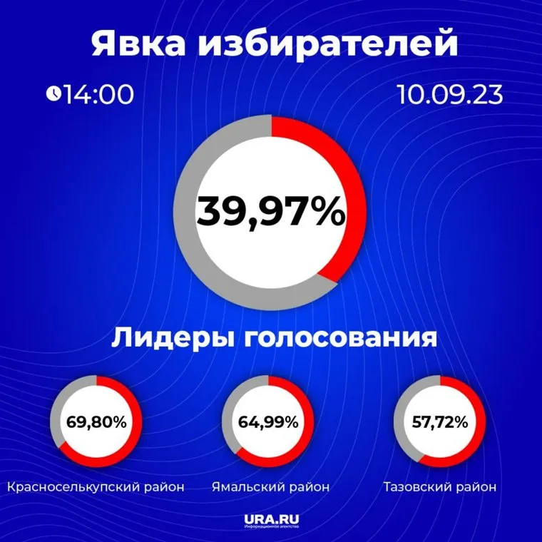 Среди городов лидерами по явке стали Губкинский, Муравленко и Салехард, среди сельских районов — Красноселькупский, Ямальский и Тазовский. Пользуясь случаем, Гиберт призвал ямальцев, которые еще не проголосовали, прийти и исполнить свой гражданский долг.