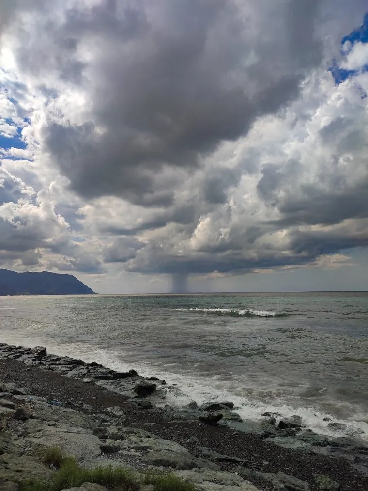 «Налетел такой ураган, что страшно было высунуться из палатки. Начался ливень, капли, казалось, летели горизонтально и пулей насквозь прошибали оба слоя палатки. Палатку приходилось держать двумя руками, чтоб ее не поломал ветер», — описывает свои приключения Оглоблин в социальных сетях. Утром, когда шторм стих, Иван увидел над морем несколько смерчей.