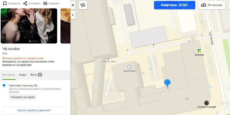 Фото: Скриншот с сайта «2ГИС» (https://2gis.ru/ekaterinburg/)