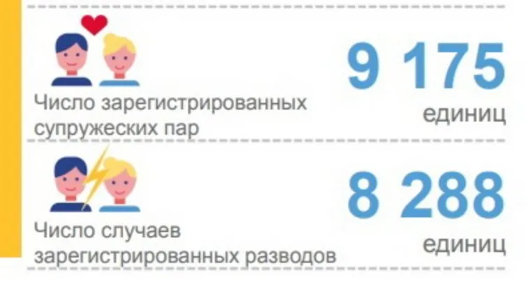 «Представляем оперативные данные по дате регистрации события в органах ЗАГС. Число зарегистрированных супружеских пар составило в январе — июне 9175, число случаев зарегистрированных разводов — 8288 единиц», — отметили в Челябинскстате.