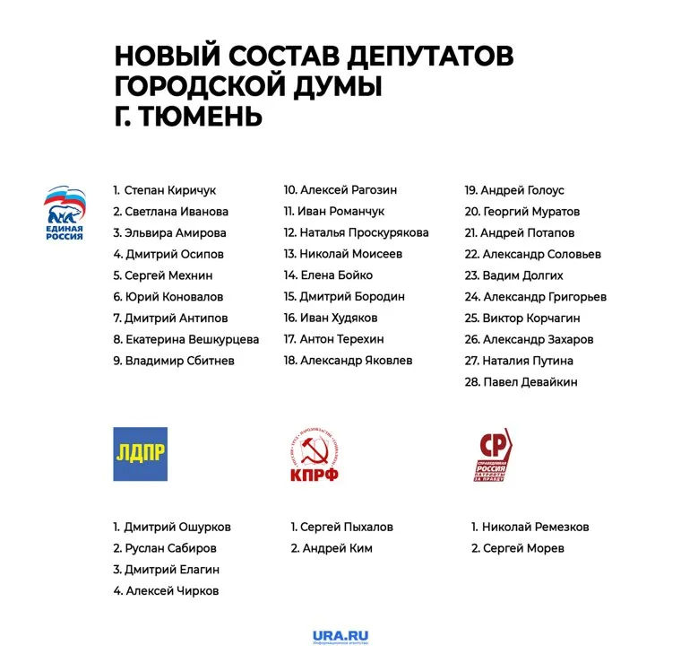 В Тюмени избрали депутатов городской думы. URA.RU собрало информацию, кто и от каких партий будет представлять тюменцев в органе.