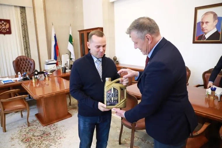 Губернатор Шумков подарил моторное масло директору завода «Урал». Фото