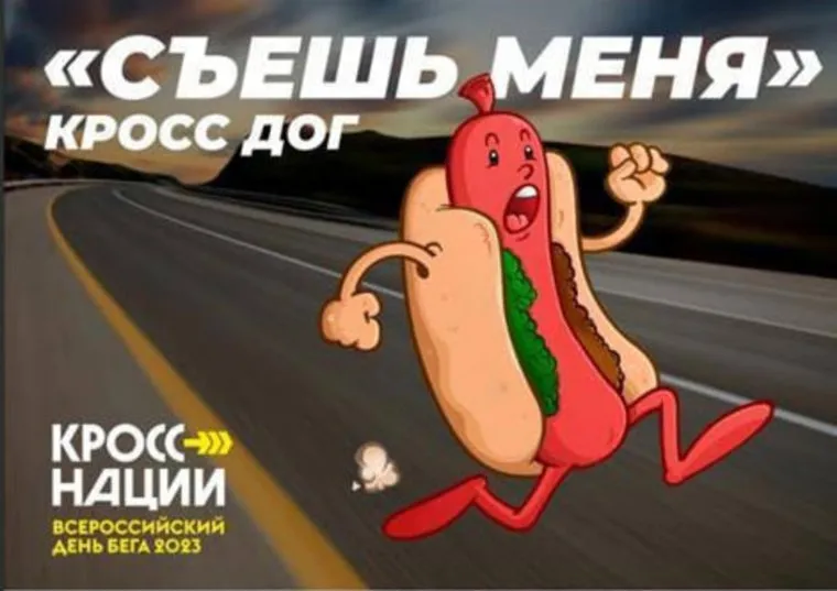 «Заряжаемся и наедаемся. Кросс-дог „Съешь меня“: вкусный и беспощадный. Мы организовали интересный и зрелищный конкурс, который пройдет в рамках „Кросса нации“ 16 сентября. Участники за одну минуту должны успеть съесть как можно больше вкусных сосисок в тесте. Победитель получит сертификат на три месяца в фитнесс-зал и чувство сытости на ближайшую неделю», — указано в публикации.