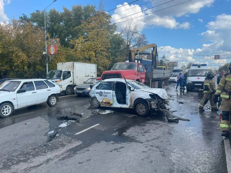 Один из столкнувшихся автомобилей принадлежал таксопарку. Сотрудники ГУ МЧС по региону ликвидировали последствия аварии . Они оперативно смыли с дорожного полотна разлившееся топливо.