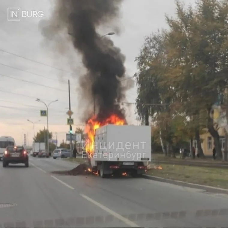 В Екатеринбурге посреди дороги загорелась «Газель». Информация об этом появилась в социальных сетях.