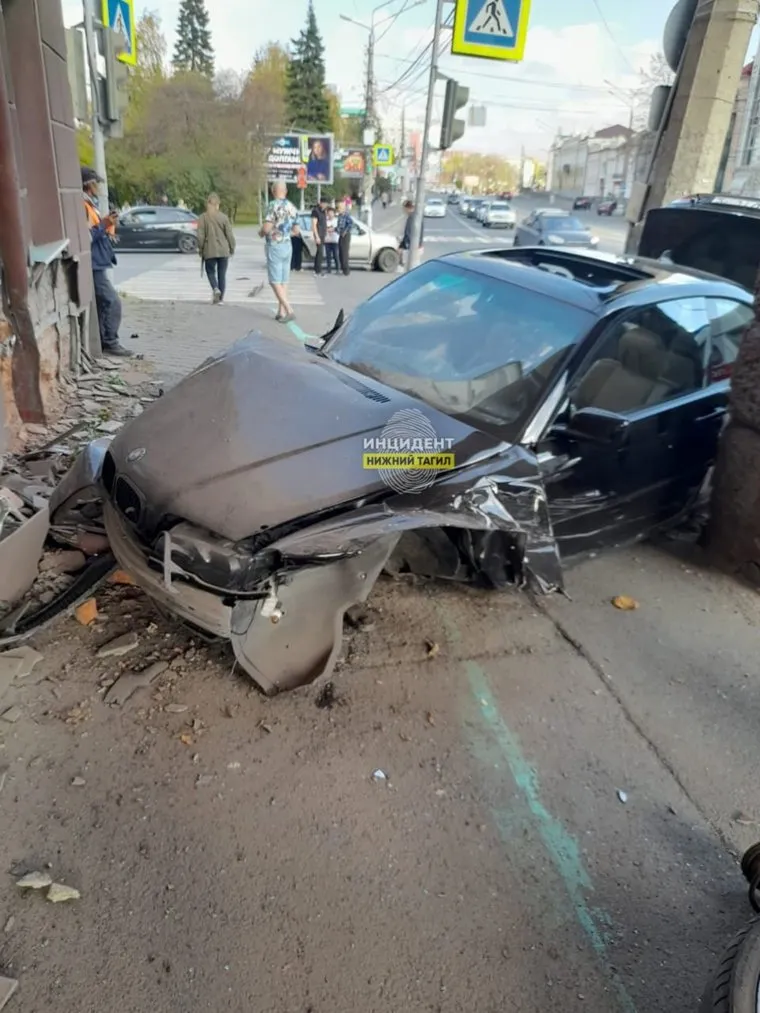 В Нижнем Тагиле легковушка врезалась в гостиницу после ДТП. Фото