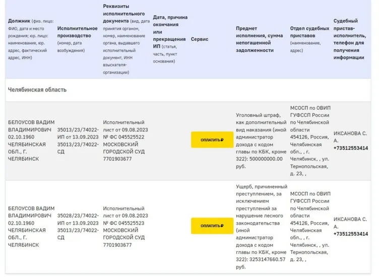 Судебные приставы приступили к взысканию почти четырех миллиардов рублей с депутата Госдумы, выходца из Челябинска Вадима Белоусова. Информация об открытии исполнительных производств появилась в базе данных ФССП.