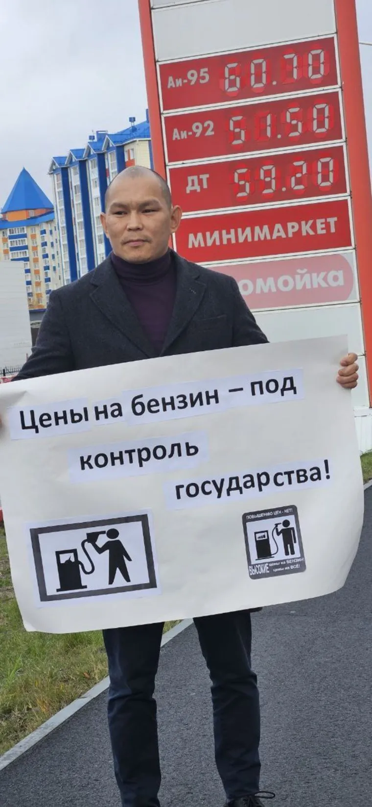 «Цена на топливо — под контроль государства! Вышел в одиночный пикет в Салехарде. Всего неделя как состоялись выборы, партия власти отчиталась о своих победах, и, как результат их „победы“, повышение цен на топливо», — написал секретарь комсомольской организации КПРФ ЯНАО Александр Ламдо в своем telegram-канале.