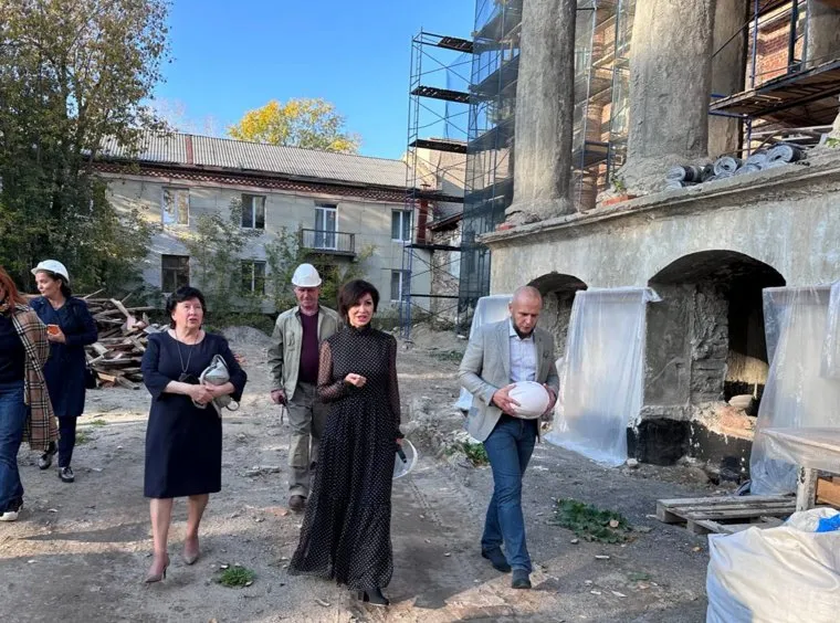 Ирина Текслер осмотрела идущие работы по восстановлению памятника истории и архитектуры в Кыштыме — усадьбу Демидовых, более известную в народе как «Белый дом»