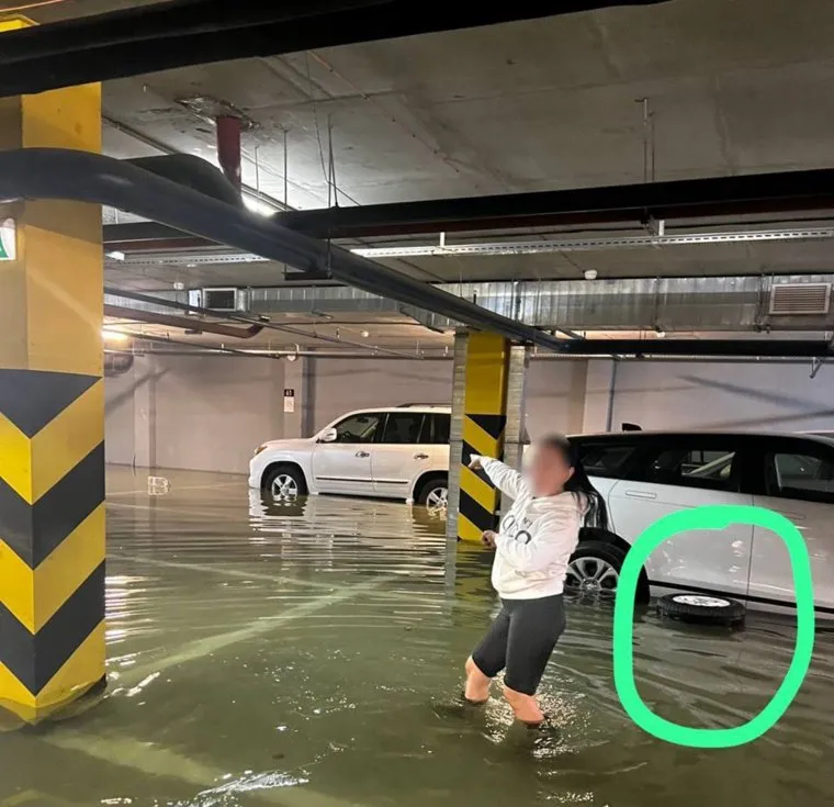 Жильцы успевают делать юмористичные фото на фоне плавающих колес