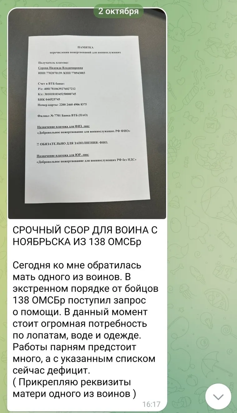 В ЯНАО мошенники собирают деньги для солдат от лица депутата региона. Скрин