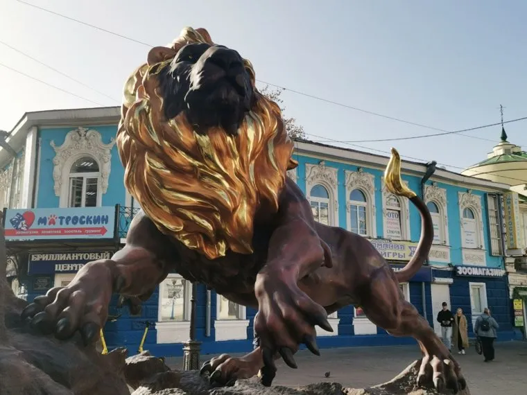 Фигуру установили на перекрестке улиц Попова-Вайнера. Лев появился благодаря инициативе сотрудников «Сима-ленда» и их добровольной финансовой поддержке.