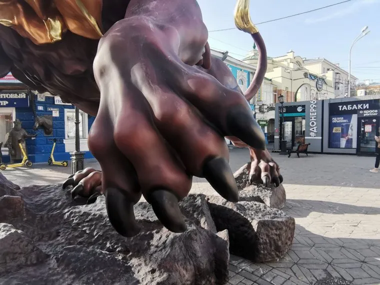 Ночью в центре Екатеринбурга тайком поставили огромного льва с бронзовыми яйцами. Фото