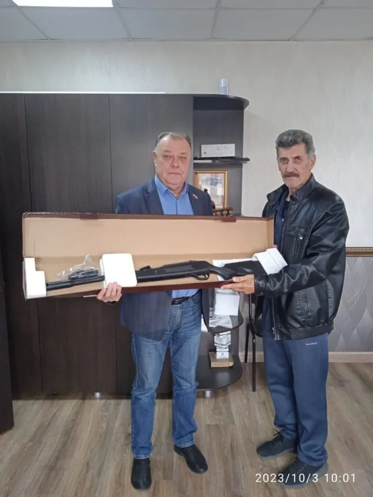 «Депутат Курганской областной думы Александр Деонисьевич Обласов подарил Куртамышской общественной организации „Стражи Границы“ пневматическую винтовку», — пишут члены организации в соцсети «Одноклассники». Ее ветераны будут использовать для занятий по стрельбе с детьми.
