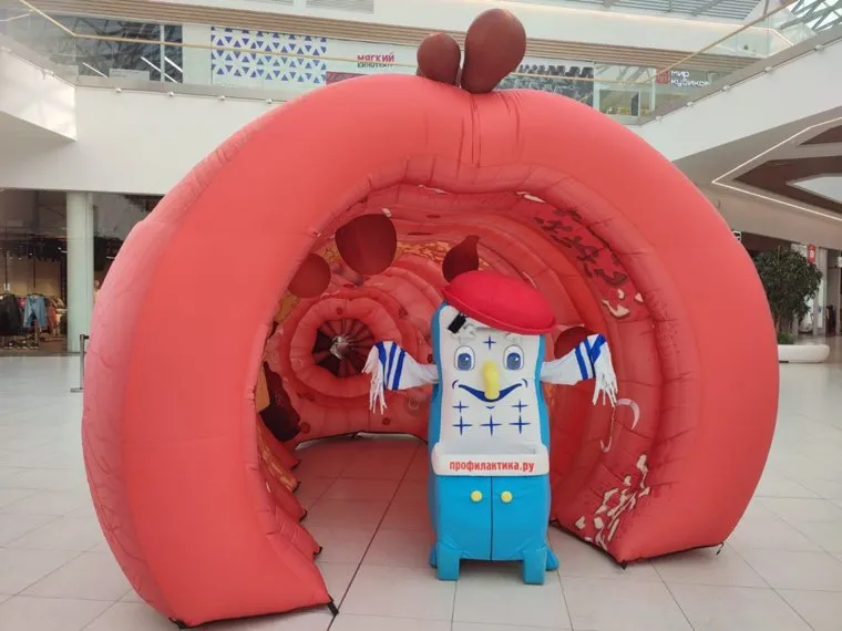На площадке разместили макет прямой кишки. На фото, предоставленных URA.RU Центром общественного здоровья, внутри позирует, в частности, «Мойдодыр». Также на стенках кишки растут цветы. Онкоскрининг можно пройти 6 октября с 13:00 до 19:00 часов и 7 октября с 10:00 до 16:00.