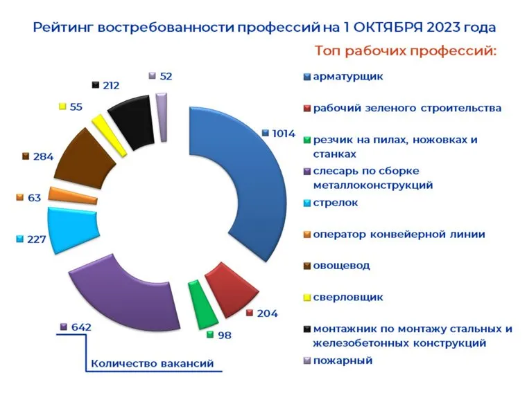 «Среди рабочих профессий наиболее востребованы арматурщики (1014 вакансий), слесари по сборке металлоконструкций (642) и овощеводы (284). Среди служащих больше всего нужны врачи (699 вакансий), инженеры-технологи (276) и учителя математики (106)», — сообщили в информационно-аналитическом отделе ведомства.