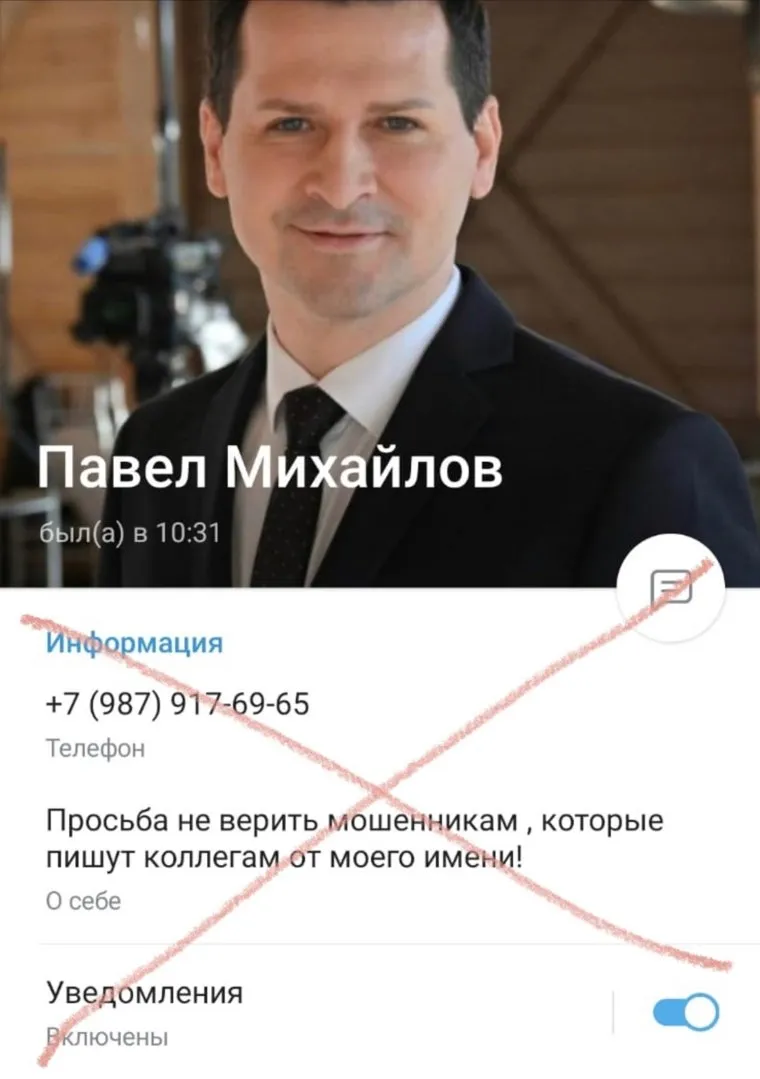 «Внимание! От моего имени создан мошеннический телеграмм аккаунт. Прошу блокировать, на сообщения не отвечать», — написал Михайлов.