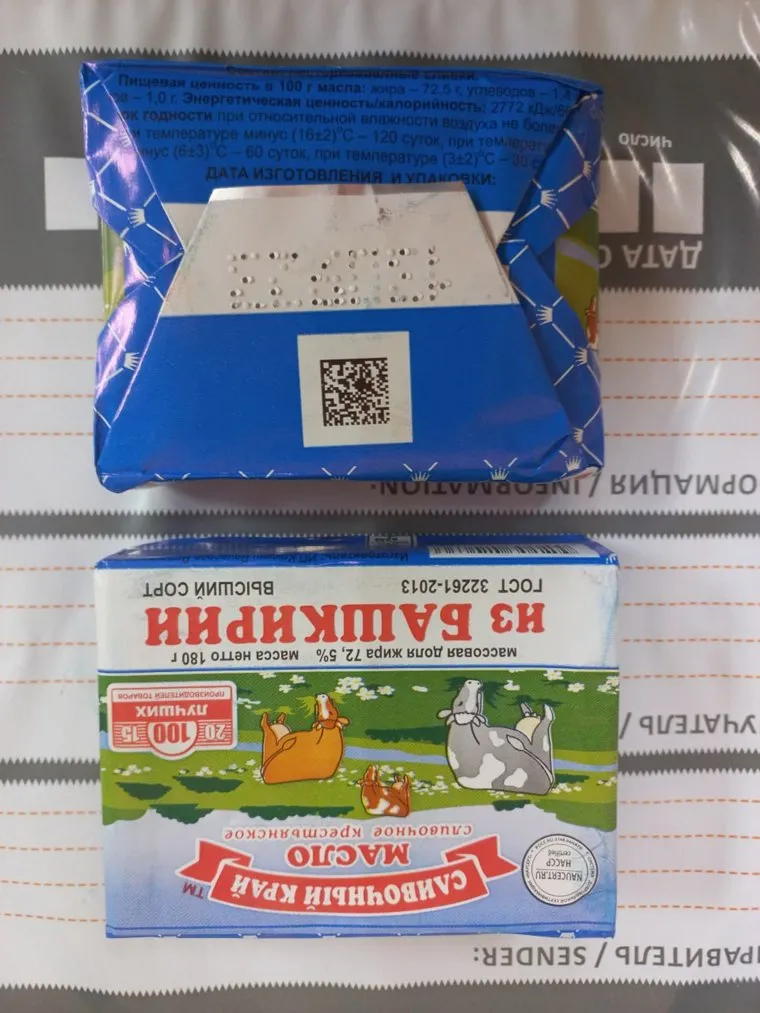 «Сливочное масло производства ИП Клюкин В.В. (город Челябинск), пробы которого отобраны в магазинах торговой сети „Пятерочка“, оказалось фальсифицированным. По результатам лабораторных исследований, в пробах масла сливочного крестьянского жирностью 72,5% „Из Башкирии“ 180 гр. (фольга), дата изготовления 13.09.2023, данного производителя выявлены растительные жиры и масла, что свидетельствует о несоответствии продукции требованиям технических регламентов и говорит о фальсификации продукции», — сообщили в пресс-службе ведомства.