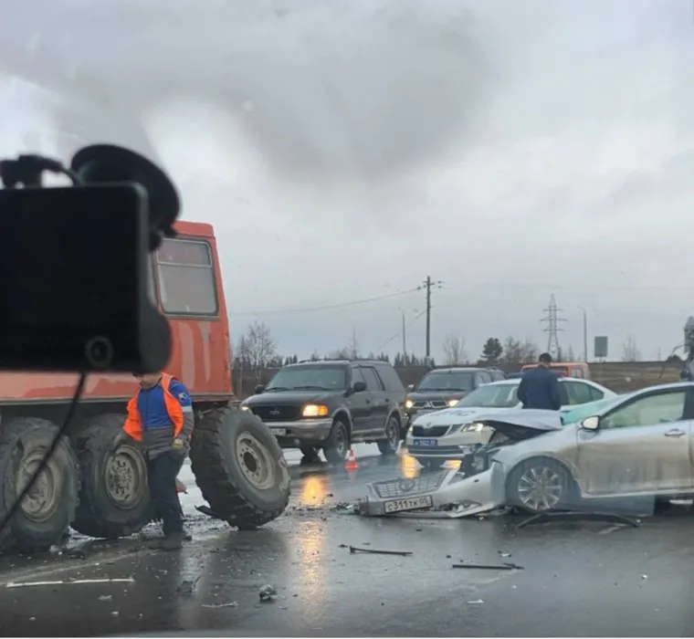 В ЯНАО у КАМАЗа вырвало колесо после столкновения с легковушкой. Фото