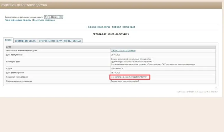 «Победа! Суд признал протокол о передаче управления СНТСН Тура ООО „Интеграция+“ незаконным. На сайте суда опубликовано решение», — пояснили собеседники URA.RU.
