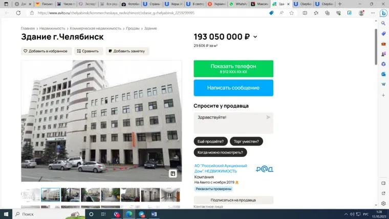 «Предлагаем здание в центре Челябинска и право аренды двух земельных участков. Нежилое здание площадью 6520,7 квадратных метров, право аренды земельного участка площадью 367 квадратных метров (под пятиэтажной частью здания) и земельного участка площадью 1637 квадратных метров (под девятиэтажной частью здания)», — говорится в объявлении, выставленном на «Авито» АО «Российский аукционный дом».