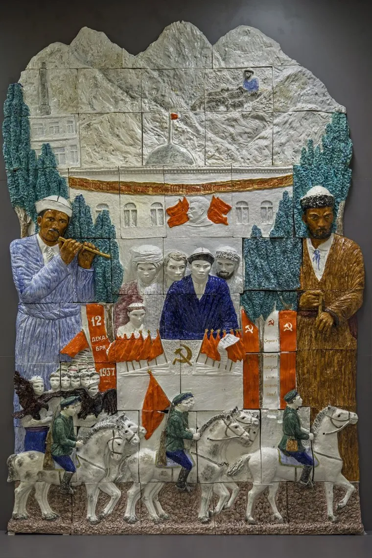 Работа попала в собрание ЕМИИ в 1946 году. «Такой огромный объект требовал больших пространств, оборудования и достаточного количества компетентных рук, что стало возможным только после открытия Реставрационно-хранительского корпуса ЕМИИ в 2021 году», — заявил Корытин. Позже Центральный выставочный зал «Манеж» из Санкт-Петербурга договорился с музеем ИЗО, что панно после реставрации станет частью экспозиции «Сопряжение форм. Русская скульптура. XX век», восстановительные работы были закончены только в 2023 году.