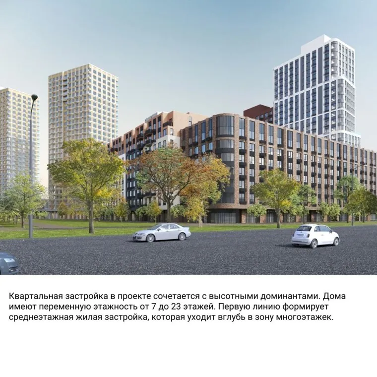 По проекту первую линию формирует среднеэтажная застройка, которая уходит вглубь многоэтажек