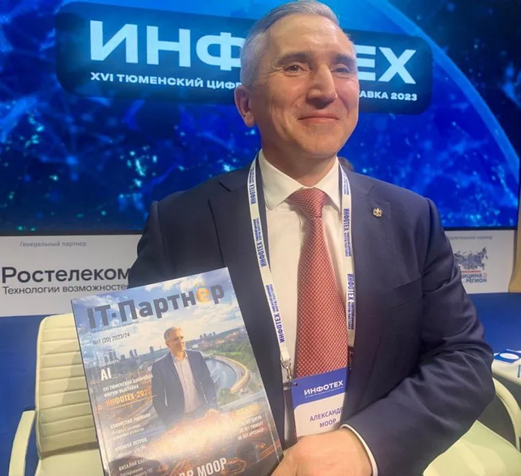 Нейросеть сгенерировала портрет губернатора Тюменской области Александра Моора. Об этом глава региона рассказал в своем telegram-канале. Фотография попала на обложку журнала «IT-партнер» форума «Инфотех 2023».