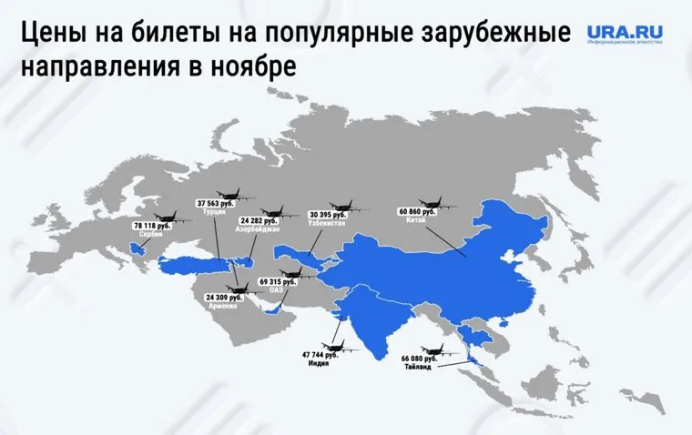 Средняя цена перелета по России в ноябре составляет 12 264, 46 рубля. Билеты туда и обратно обойдутся:
