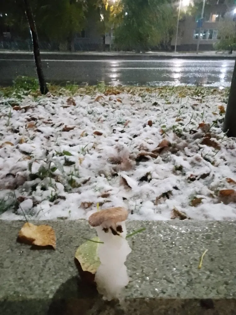 В Тюмени вечером 20 октября выпал первый в этом сезоне снег. Горожане делятся фото снеговиков в соцсетях.