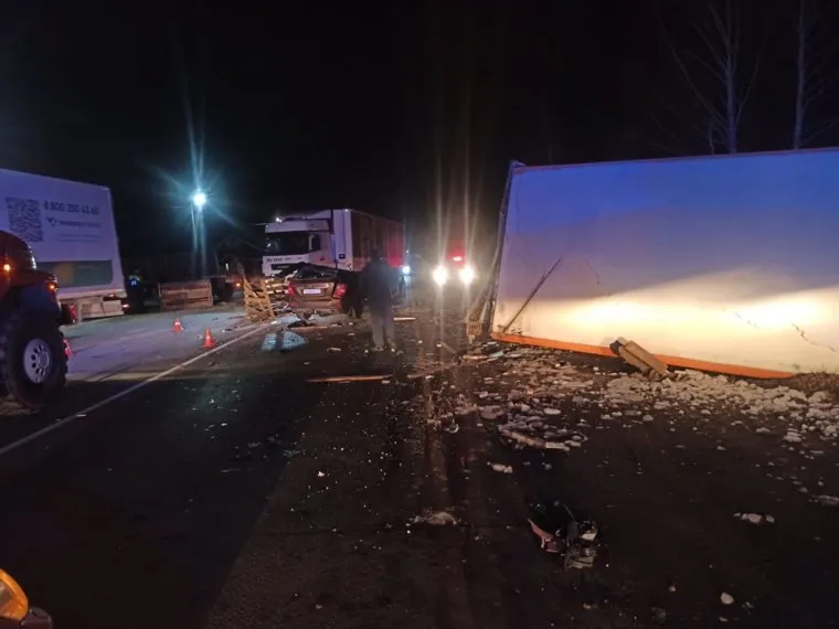 Водитель, личность которого не установлена, управляя грузовым автомобилем Mercedes с прицепом, столкнулся с прицепом такого же грузового автомобиля в момент, когда машина поворачивала налево. Далее водитель выехал на встречку, где врезался в легковушку марки Lifan. После грузовой автомобиль съехал с дороги в кювет и опрокинулся. Водитель погиб на месте.