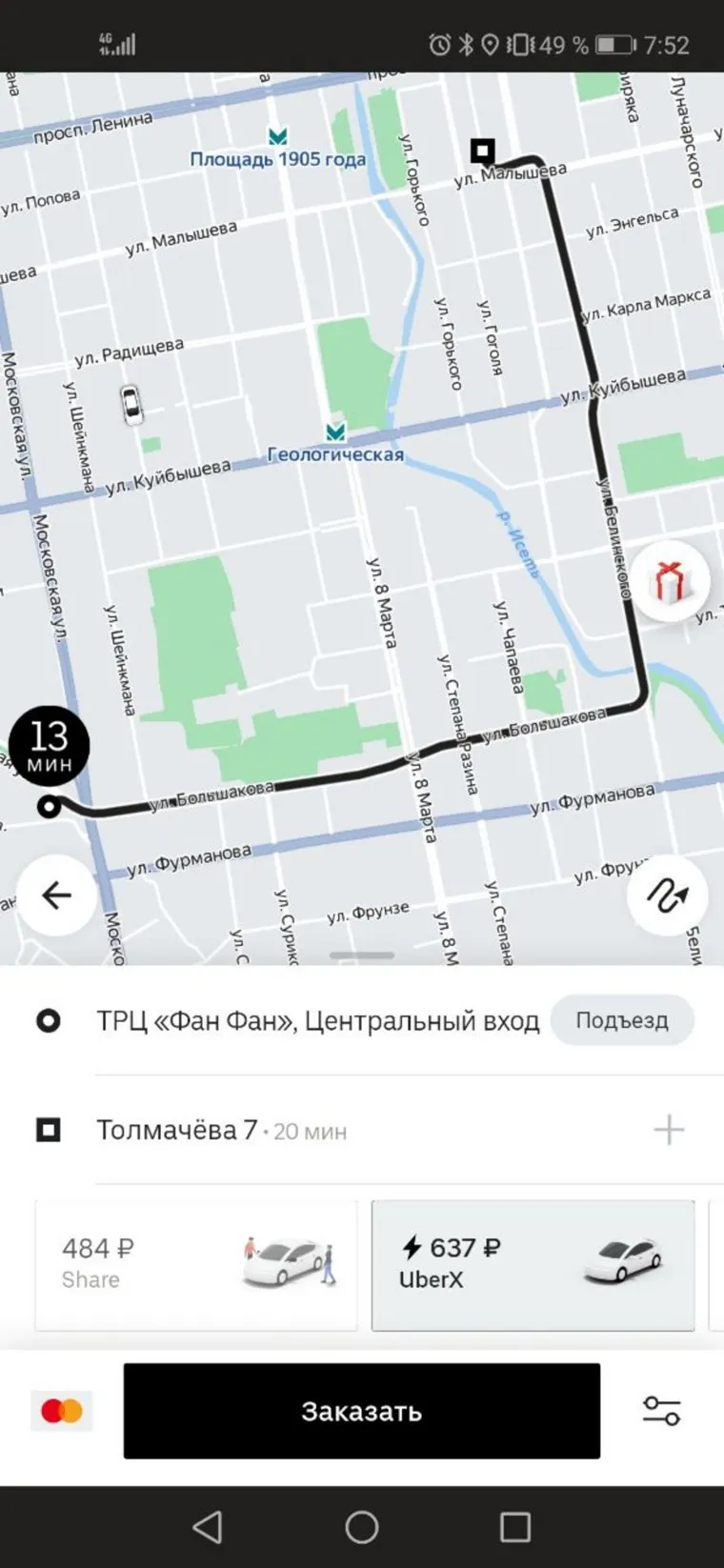 В Екатеринбурге из-за непогоды резко выросли цены на такси. Скрин