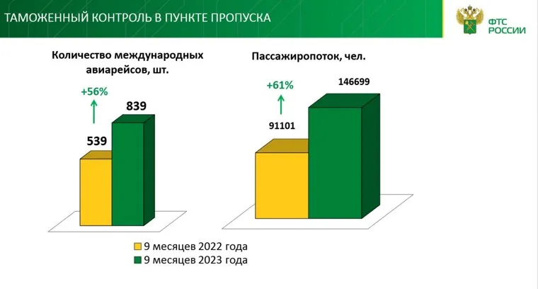 «За девять месяцев 2023 года таможенную границу в международном аэропорту Перми пересекли более 146 тысяч физических лиц. Это на 61% больше, чем в аналогичном периоде прошлого года. Тогда границу пересекли 91 тысяча физлиц», — рассказали в пресс-службе.