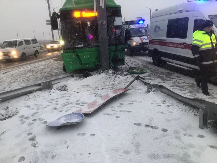 В Челябинске утром 25 октября на мосту в Ленинском районе автобус врезался в столб после столкновения с легковым автомобилем. Об этом сообщили в пресс-службе госавтоинспекции.