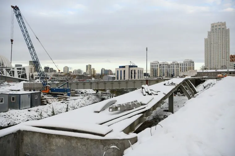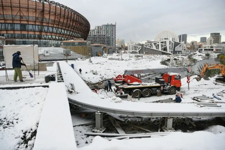 Рабочие установили каркас будущего пешеходного моста